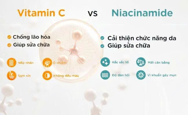 Ngoài ra, Vitamin C thường hoạt động tốt ở môi trường pH thấp, trong khi Niacinamide ổn định hơn ở pH trung tính → sự khác biệt này đôi khi ảnh hưởng đến hiệu suất tổng thể.